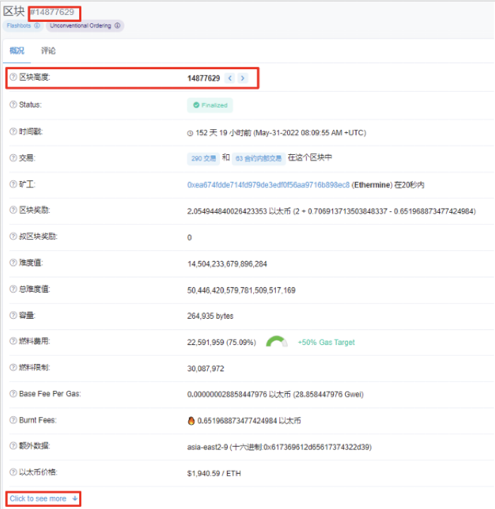 例: 如果区块#14877629的哈希值是